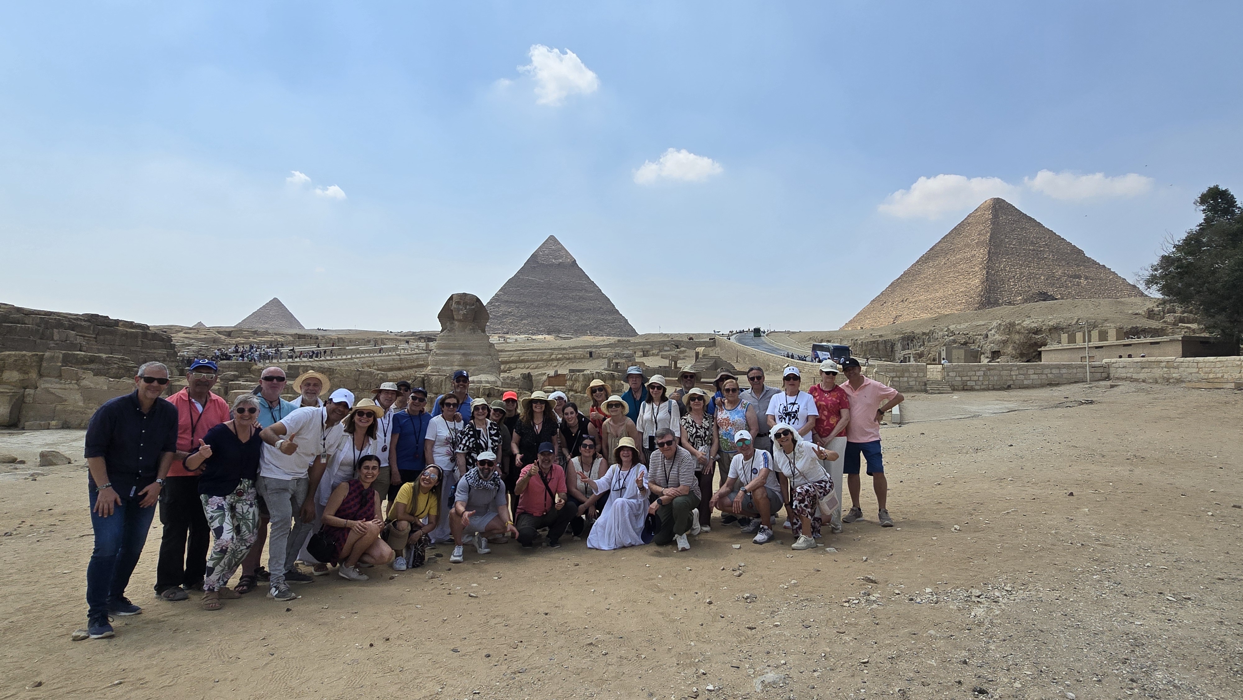 En la imagen de Fidel Francés se aprecian las tres pirámides más conocidas, las de Keops, Kefrén y Micerino, vigiladas por la esfinge de Gizé. Mañana, sábado 18, otra expedición de viajeros, en buena parte formada por ontinyentins, que también han confiado en Furitravel, se disponen a hacer el mismo recorrido y a los que les deseamos disfruten de las mismas y gratas experiencias vividas por quienes ya viajaron y lo hicieron, además, disfrutando de una magnífica temperatura durante toda la semana.