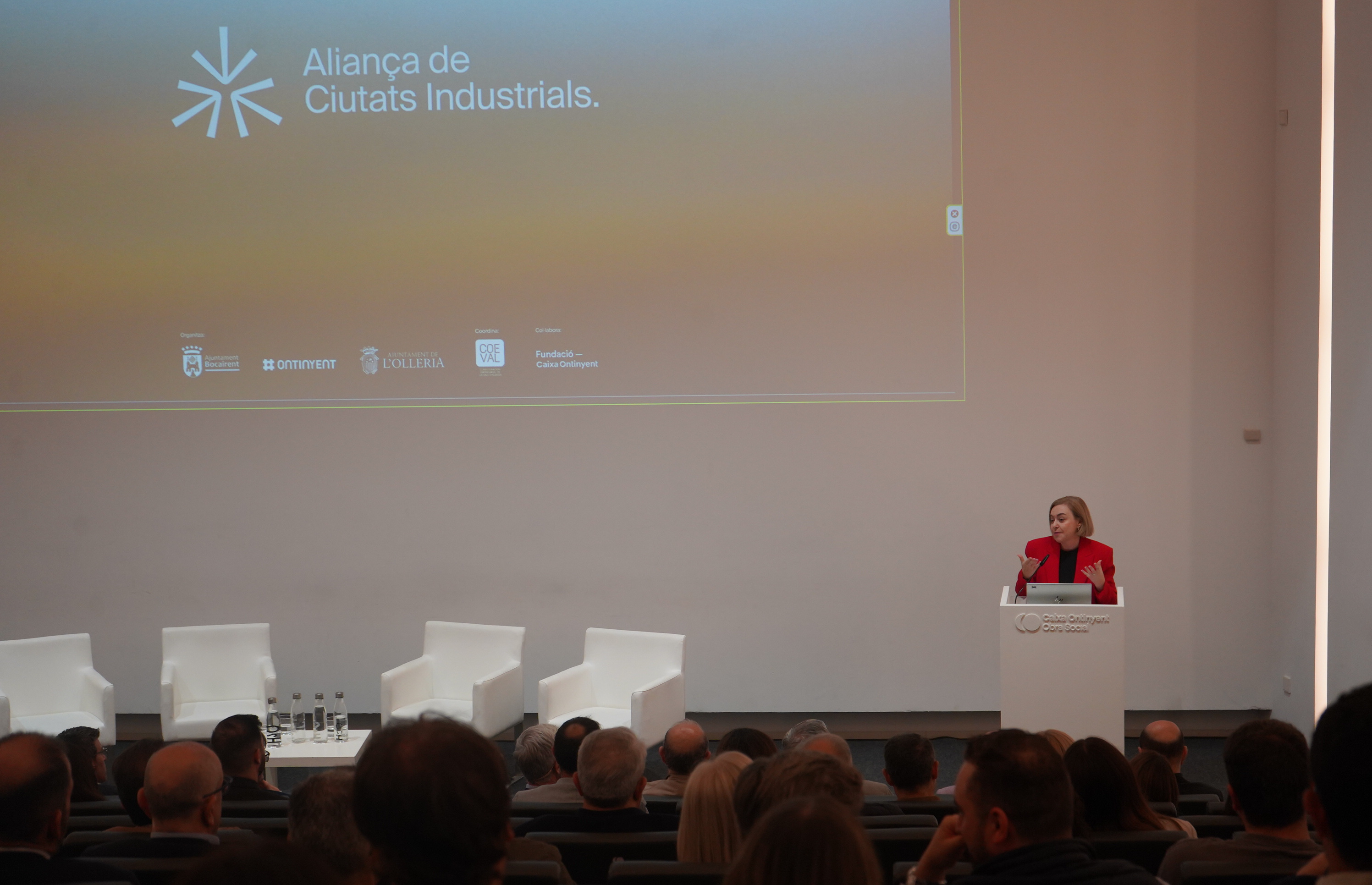 El Centro Cultural Caixa Ontinyent acogía este jueves la jornada “Aliança de Ciutats Industrials”. Tras la presentación, los alcaldes de las localidades participantes, Jorge Rodríguez (Ontinyent), Ramón Vidal (l’Olleria) y Xavi Molina (Bocairent) exponían las diferentes políticas que se han llevado a cabo desde sus respectivas localidades para afrontar los desafíos económicos a los que se enfrenta la Vall d'Albaida.