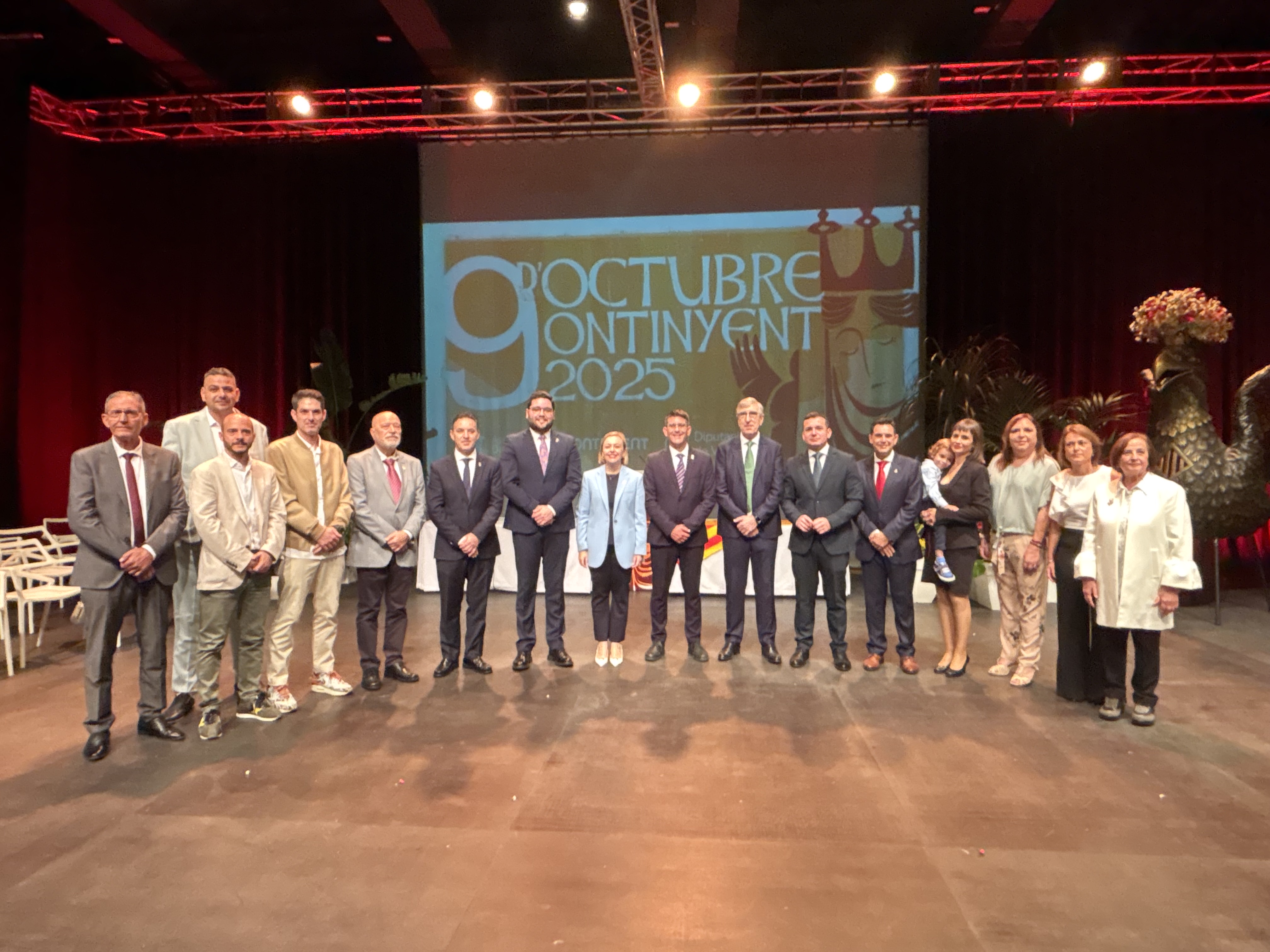 Ontinyent ha celebrado el 9 d’Octubre hoy jueves y lo ha hecho en la Sala Gomis, puesto que la mala previsión meteorológica que ya se anunciaba a primeros de semana aconsejó cambiar el escenario del acto para poder celebrarlo a cubierto.