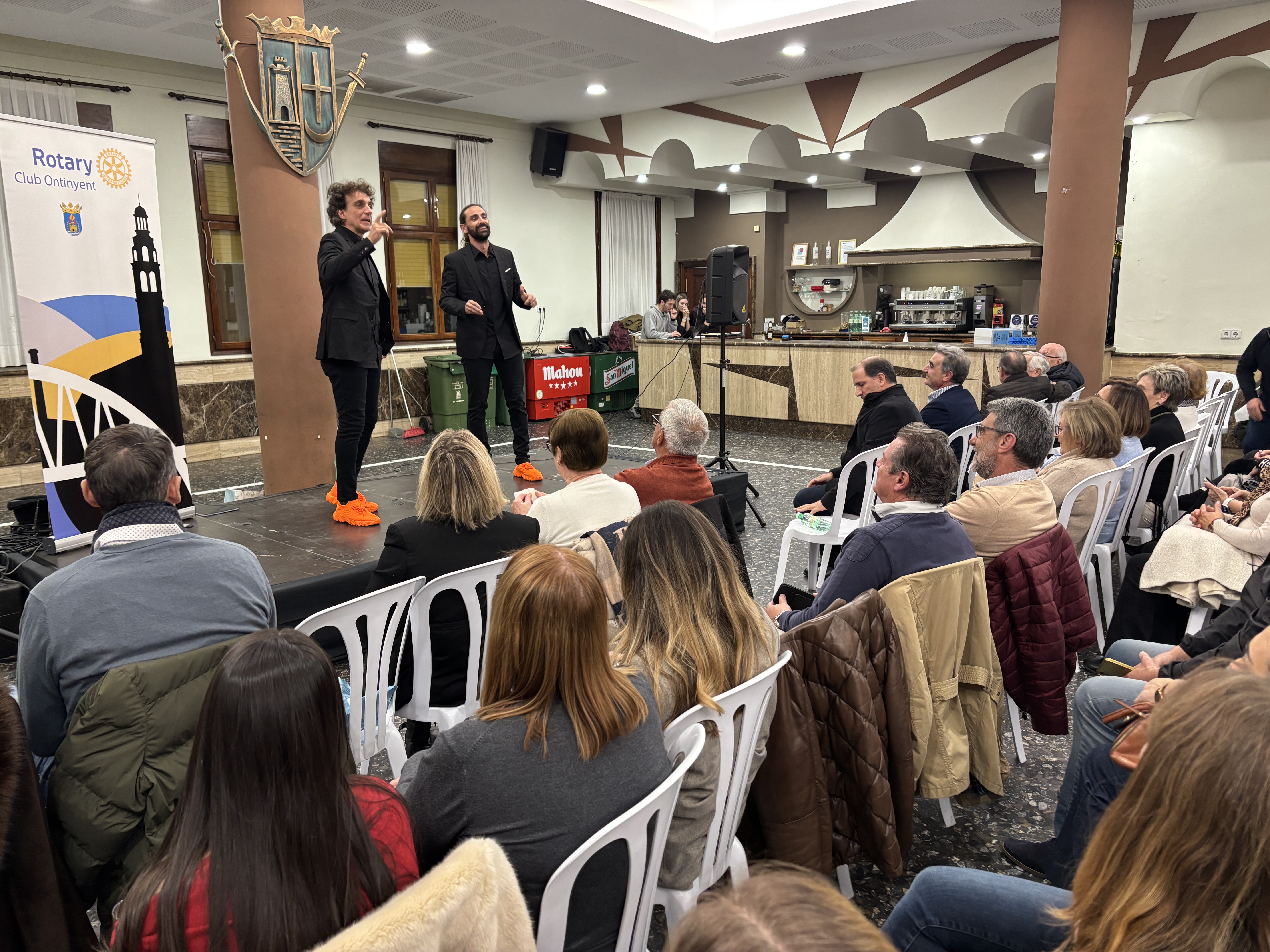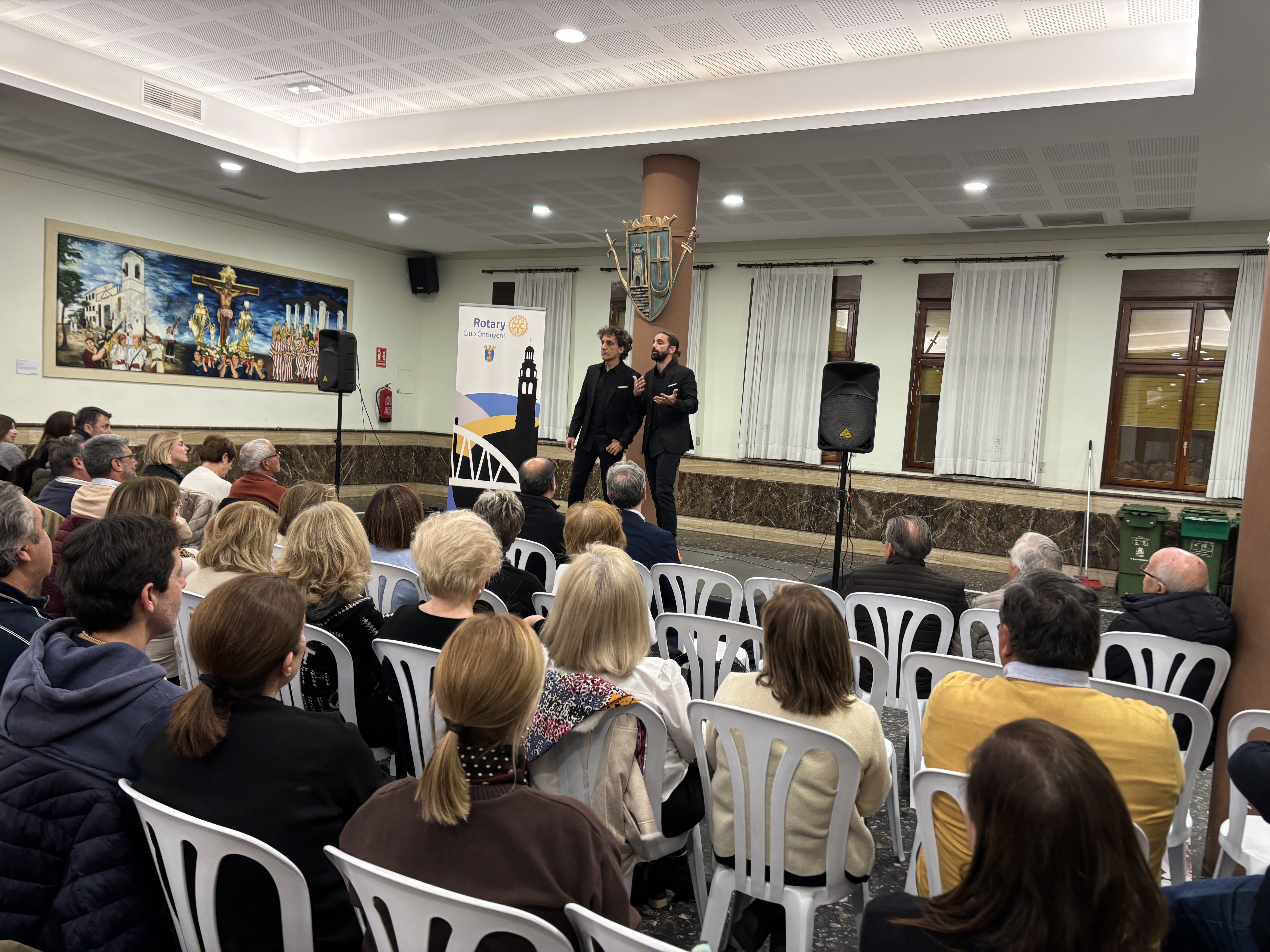 El Rotary Club Ontinyent celebró este jueves un espectáculo solidario protagonizado por Jesús Manzano y Miguel Moraga, con el objetivo de recaudar fondos para la asociación “Latiendo Juntos”, dedicada a apoyar a personas con cardiopatías y a sus familias.