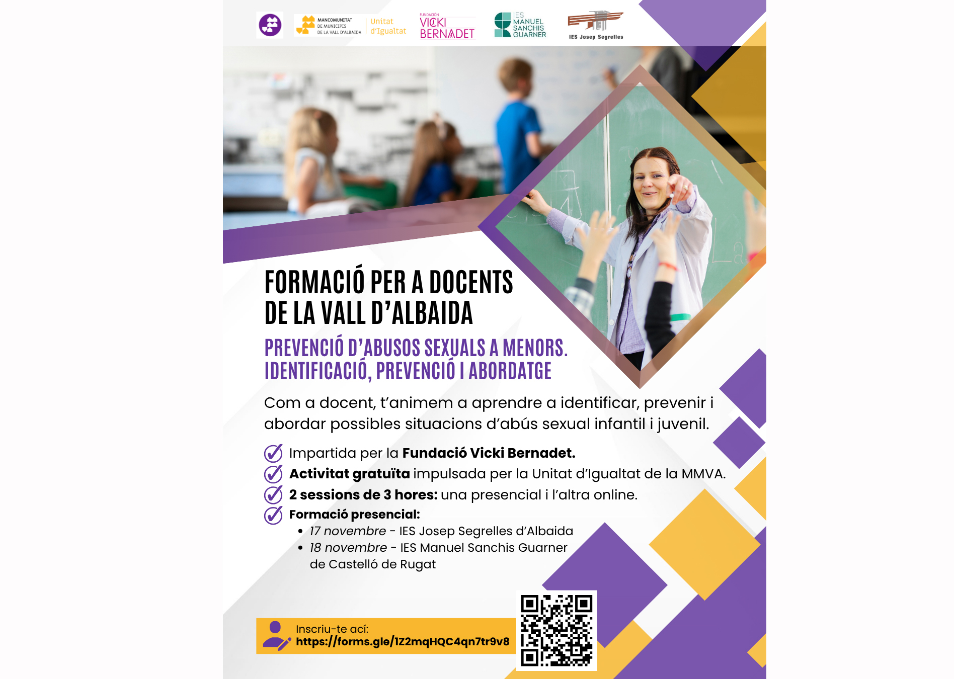 La Unitat d’Igualtat de la Mancomunitat de Municipis de la Vall d’Albaida, amb l’objectiu de reforçar la protecció i la seguretat dels infants i joves de la comarca, convoca una formació gratuïta adreçada a tots els docents dels centres educatius de la comarca de la Vall d’Albaida.