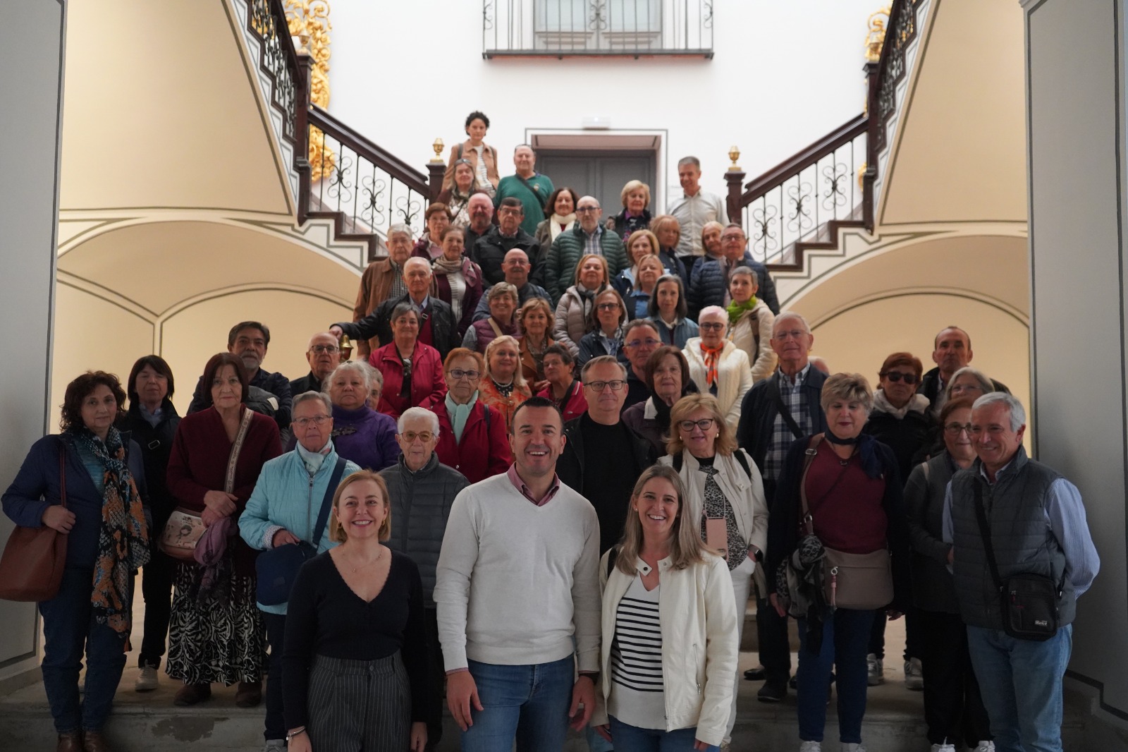 Un grup de 53 persones del programa de promoció de l’ autonomia ‘Majors Actius’ d'Ontinyent, a la Vall d'Albaida, ha visitat este dilluns la Diputació de València, on ha tingut com a amfitriona a la vicepresidenta primera i diputada de la comarca, Natàlia Enguix, qui s'ha mostrat molt feliç de poder rebre als seus paisans en la institució. La comitiva ha recorregut diferents estades dels palaus de la Batlia i els Scala o l'hall de presidència, on han pogut veure els quadres dels anteriors presidents de la corporació. Allí, han sigut saludats pel president de la Diputació, Vicente Mompó, amb qui han compartit uns minuts de xarrada abans de continuar el recorregut.